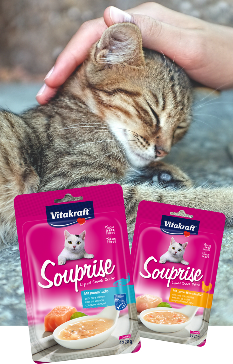 However, cats are not just carnivores: they also ingest vegetable matter rich in vitamins from the stomach contents of their prey. Our house cats therefore need a balanced, protein-rich diet that meets their special nutritional requirements. As true connoisseurs, cats also love variety – and the Vitakraft range has something to suit every taste.